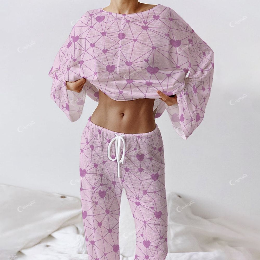 Colordate Amour Lavender Women's Purple Heart Print Long Sleeve Cotton Homewear Set