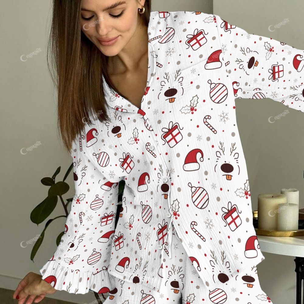 Colordate Women's Christmas Pattern Vintage Printed Linen Cotton Suit