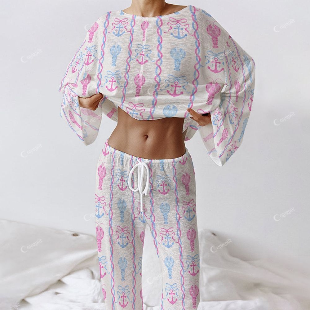 Colordate Women's Shrimp Print Long Sleeve Cotton Homewear Set