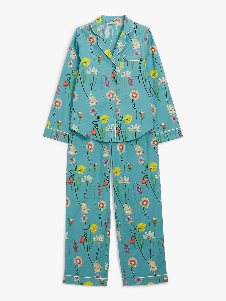 Cotton Aqua Floral Long Sleeve Pajama set