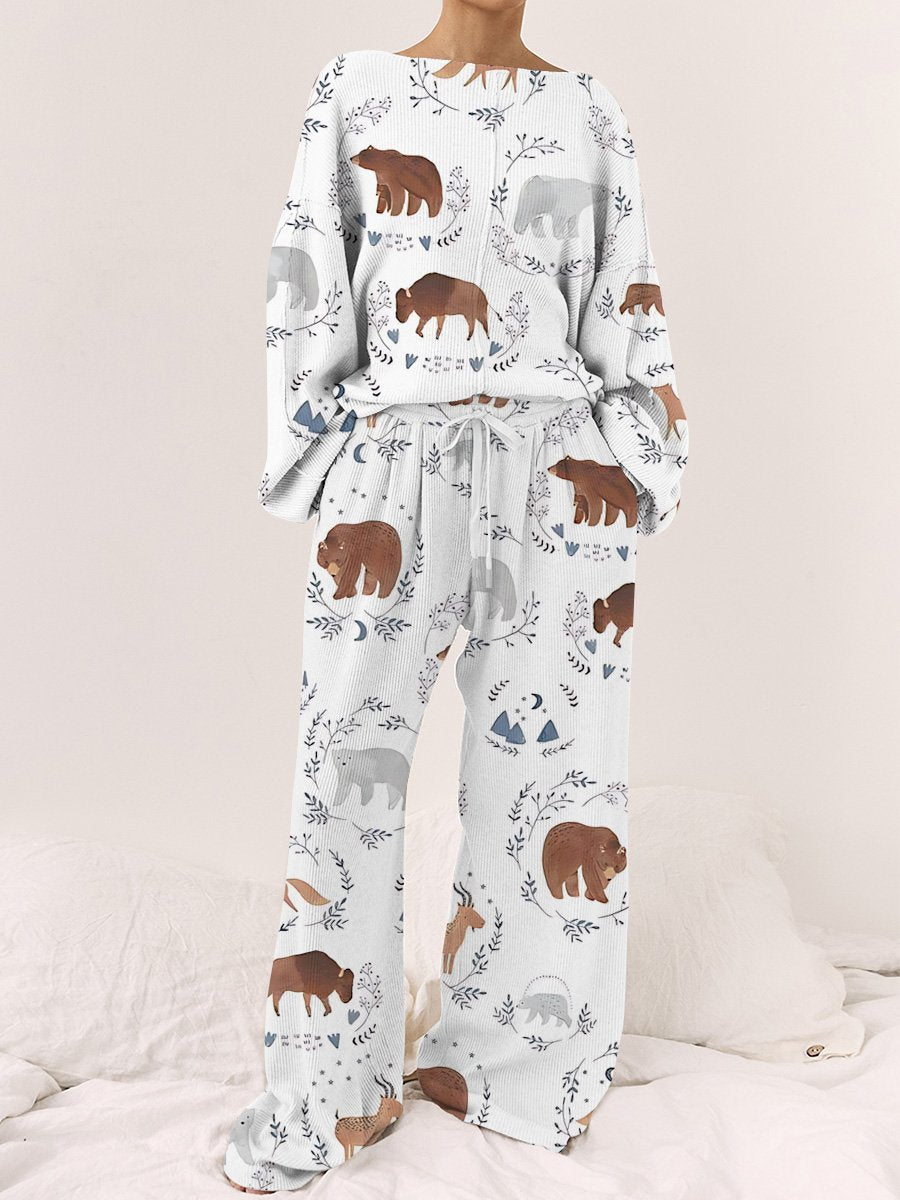 Women's Bear Fox Print Long Sleeve Pajama Set