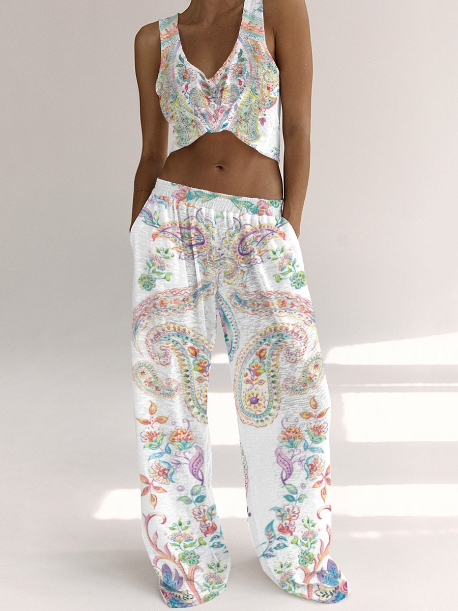 Step into a world where sunsets melt into fabrics and every thread tells a story. "Wanderlust Dreams" is your passport to bohemian serenity—a sleepwear set that dances between vibrant artistry and cloudlike comfort. Inspired by nomadic adventures and artisan markets under open skies, this ensemble wraps you in a tapestry of rich, hand-painted florals, intricate paisleys, and earthy hues that whisper of distant lands.